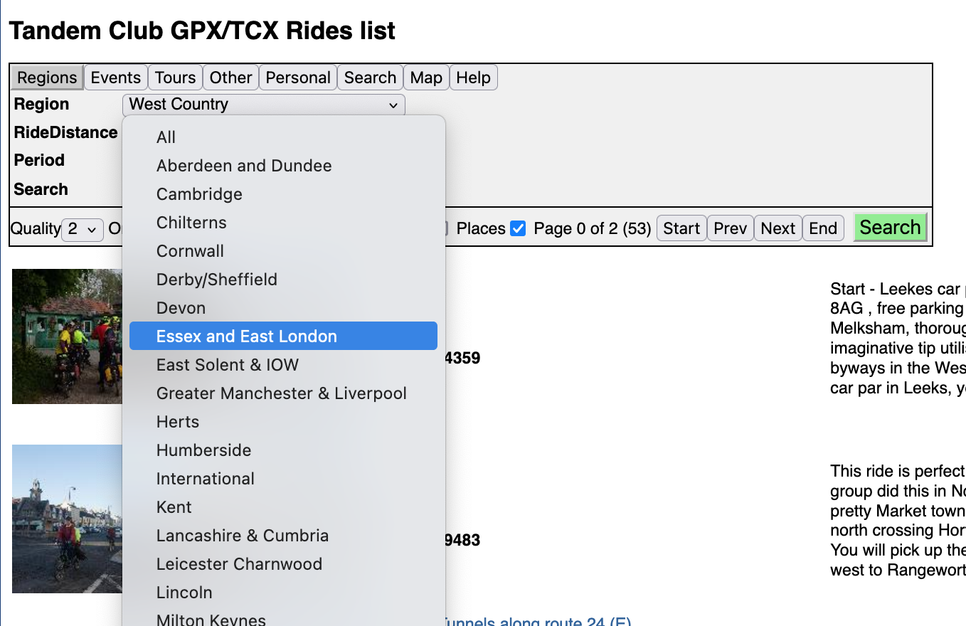 The default presentation will be the region you live in, however you may wish to look at rides available in other regions. The top dropdown allows you to look at these