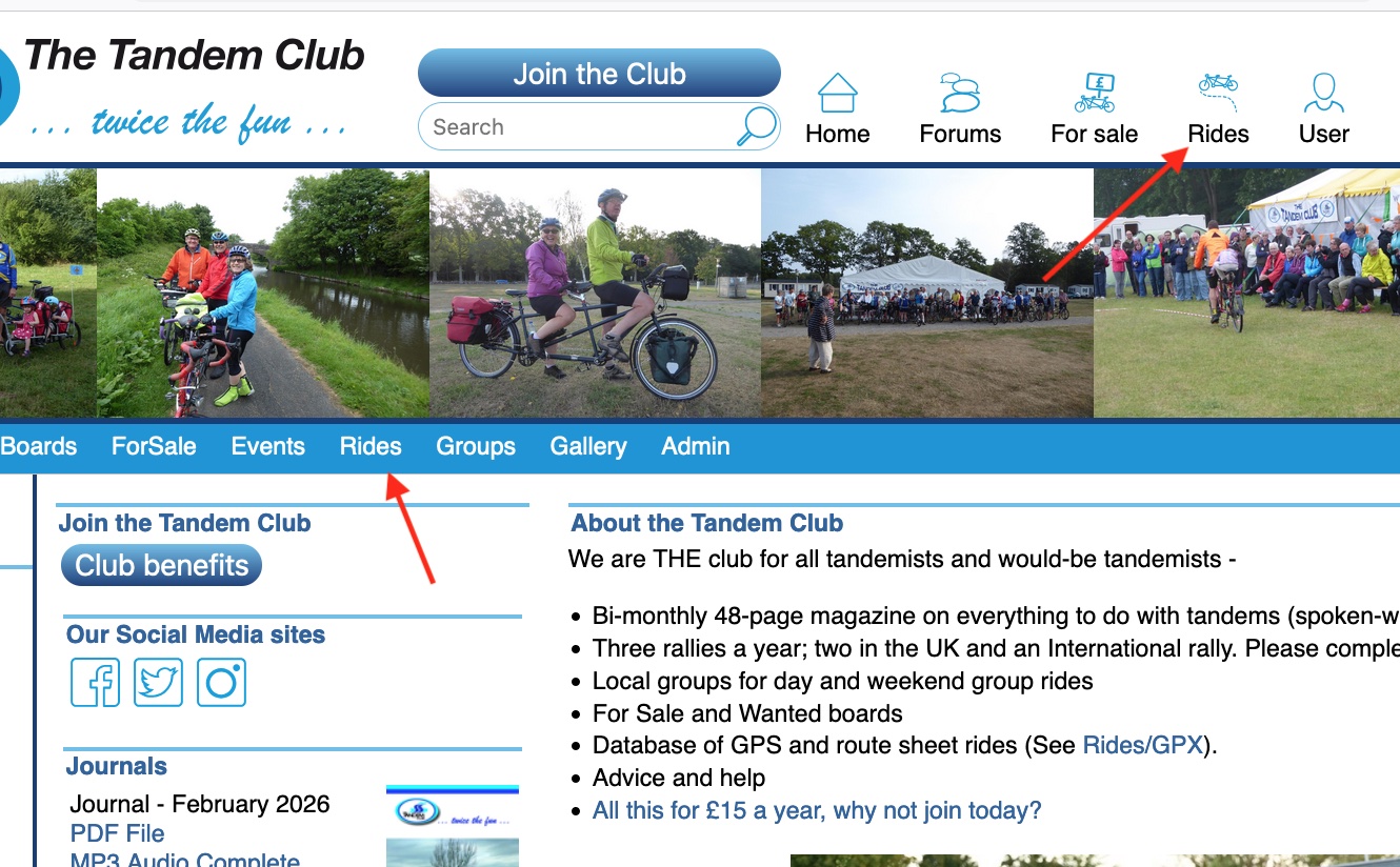 The URL is https://tandem-club.org.uk/rides so put this into your bookmarks on your phone/compute