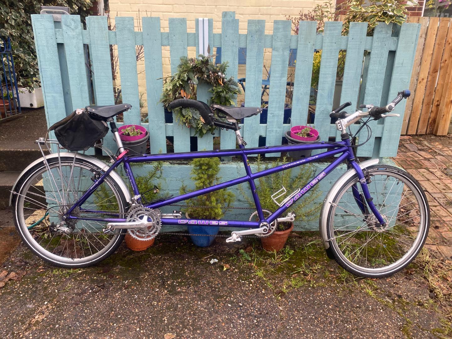 I'm trying hard to give this tandem away as age as dangerous roads have finally defeated us. Bike is fully functional and tidy. Collect only, by arrangement. Based SE Sheffield close to Jcn 31 M1. Please somebody give her a good home!
