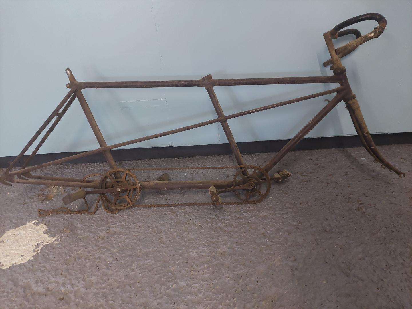 On offer is a 1935 tandem cycle in need of further renovation. I bought this some 10 years ago with the idea of converting it into a tandem my wife & I would want to ride but subsequently discovered it is a rare beast with original drop handlebars and celluloid undrilled prewar mudguards. Restoration then stopped as I didn’t want a tandem with drops but I didn’t want to destroy an unusual survivor. So it is now up for sale.
