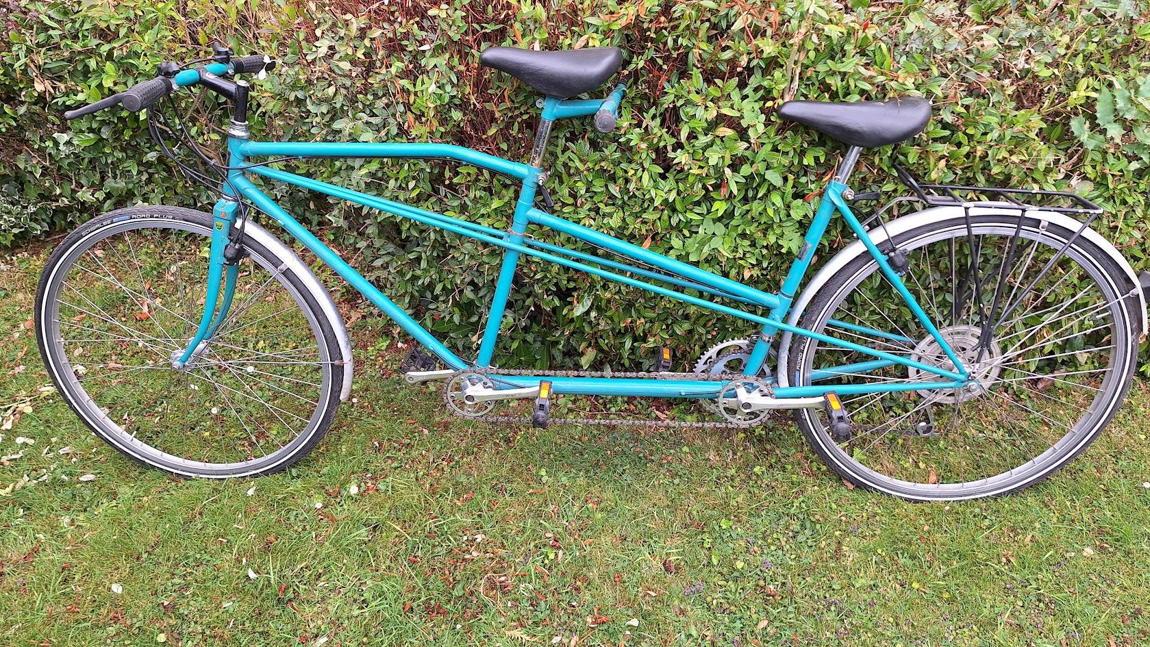 By: Tony Gordon/br>Id: 1646/br>Email: (Login to view)/br>Telephone: (Login to view)/br>Location: Derby/br>Listing ends on: Wednesday 1st July 2026/br>Price: Free to a good home/br>Green Pashley E-type tandem, a little faded but in working order. Fitted with 2x6 indexed derailleur gears, rare hydraulic rim brakes, good Schwalbe tyres, flat pedals, mudguards and a rear pannier rack.