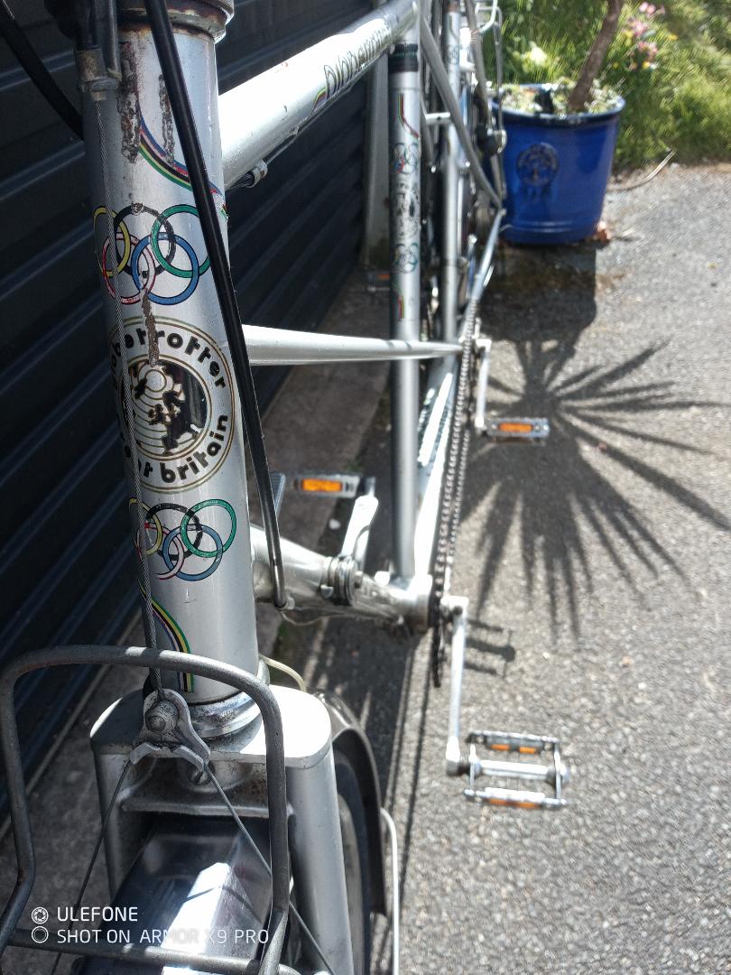 This is a very original bike, except for the saddles which have been replaced. ‘V’ brakes provide the main braking, in addition to an Atom drum drag brake. Brakes pads are new and the tyres are in good condition. Ten speed derailleur gears.
