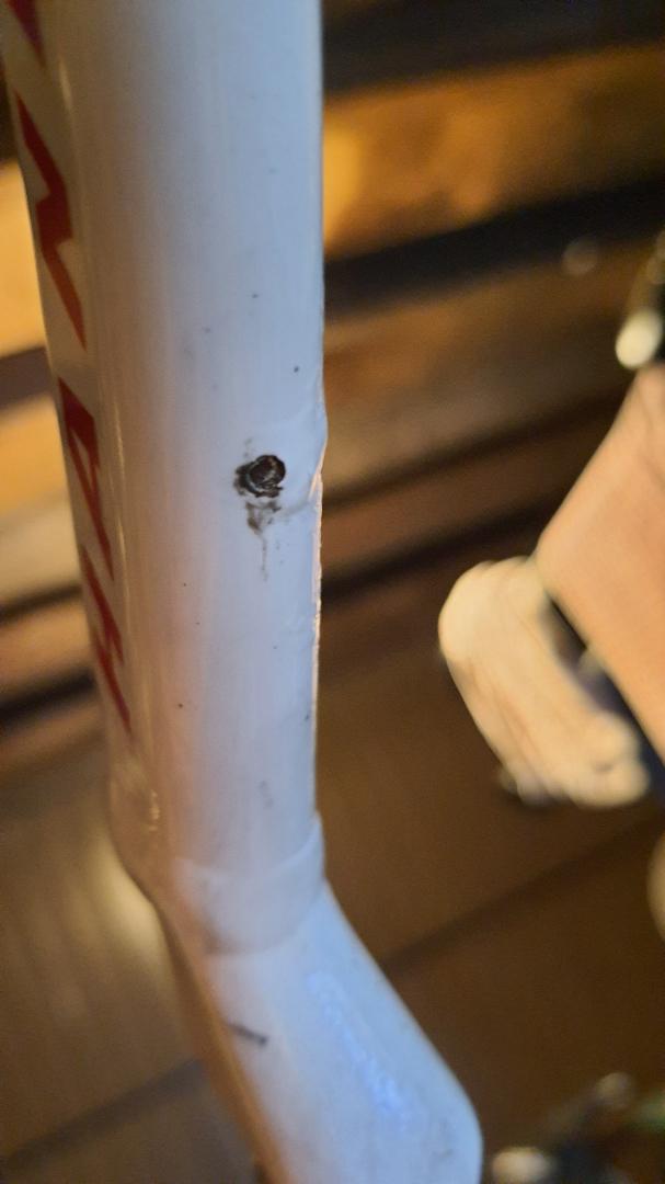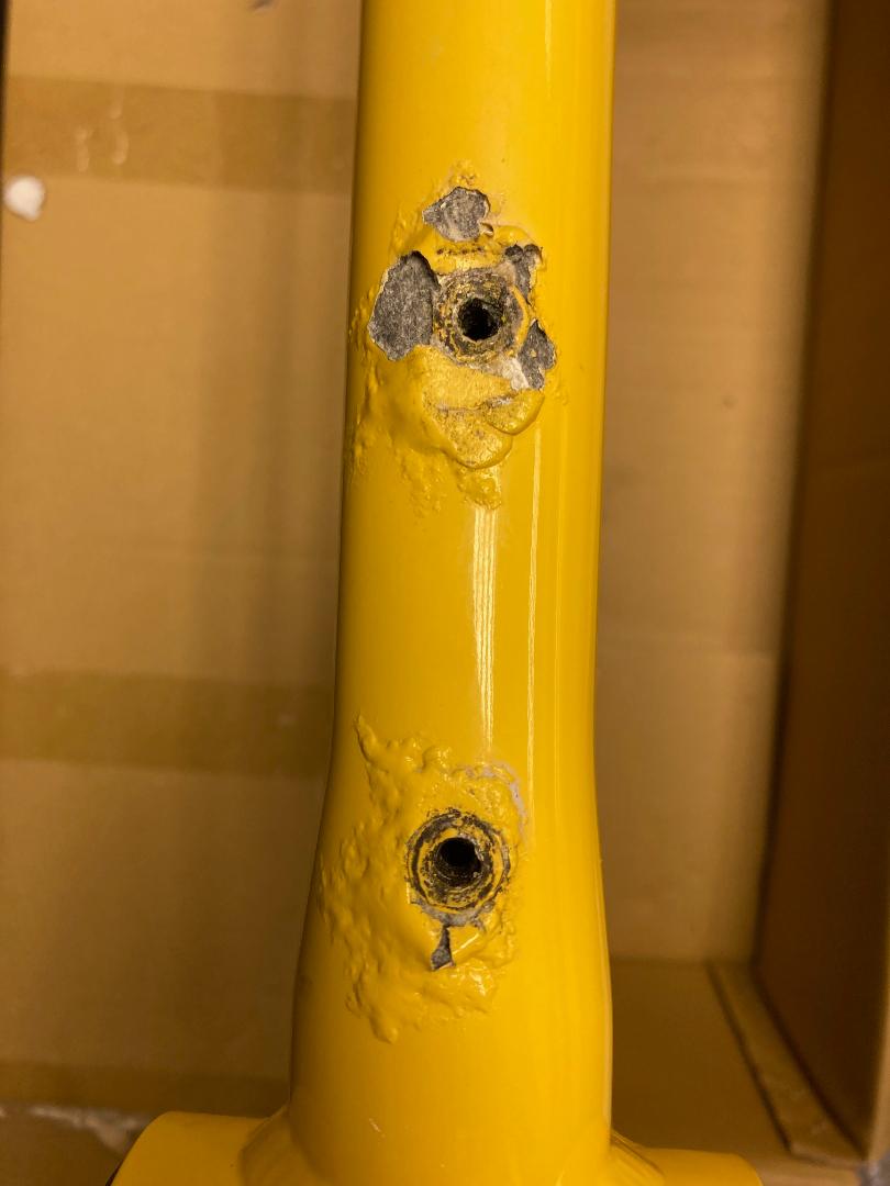 Plan going forward - Des is an engineer (tool making, medical grade injection moulding). I'll get him to inspect the area (and whole frame) with me, take some paint off and then prime / make good - I'd like to try and leave the 'handmade in USA' decals undisturbed if possible.