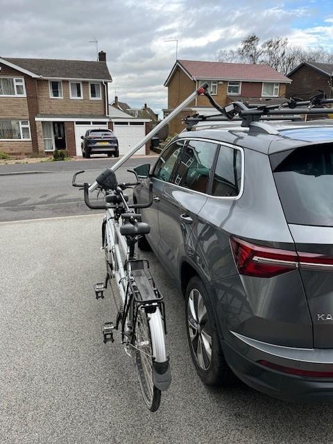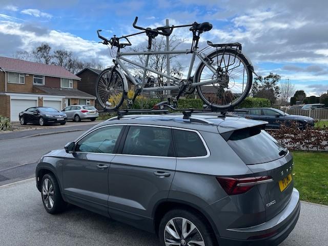 Included in the sale is the rack to load the tandem on to the car. Our rack has a spring loaded arm, making it easy to lift the tandem up. (I can do it on my own). You'll need roof bars with a slot in them.