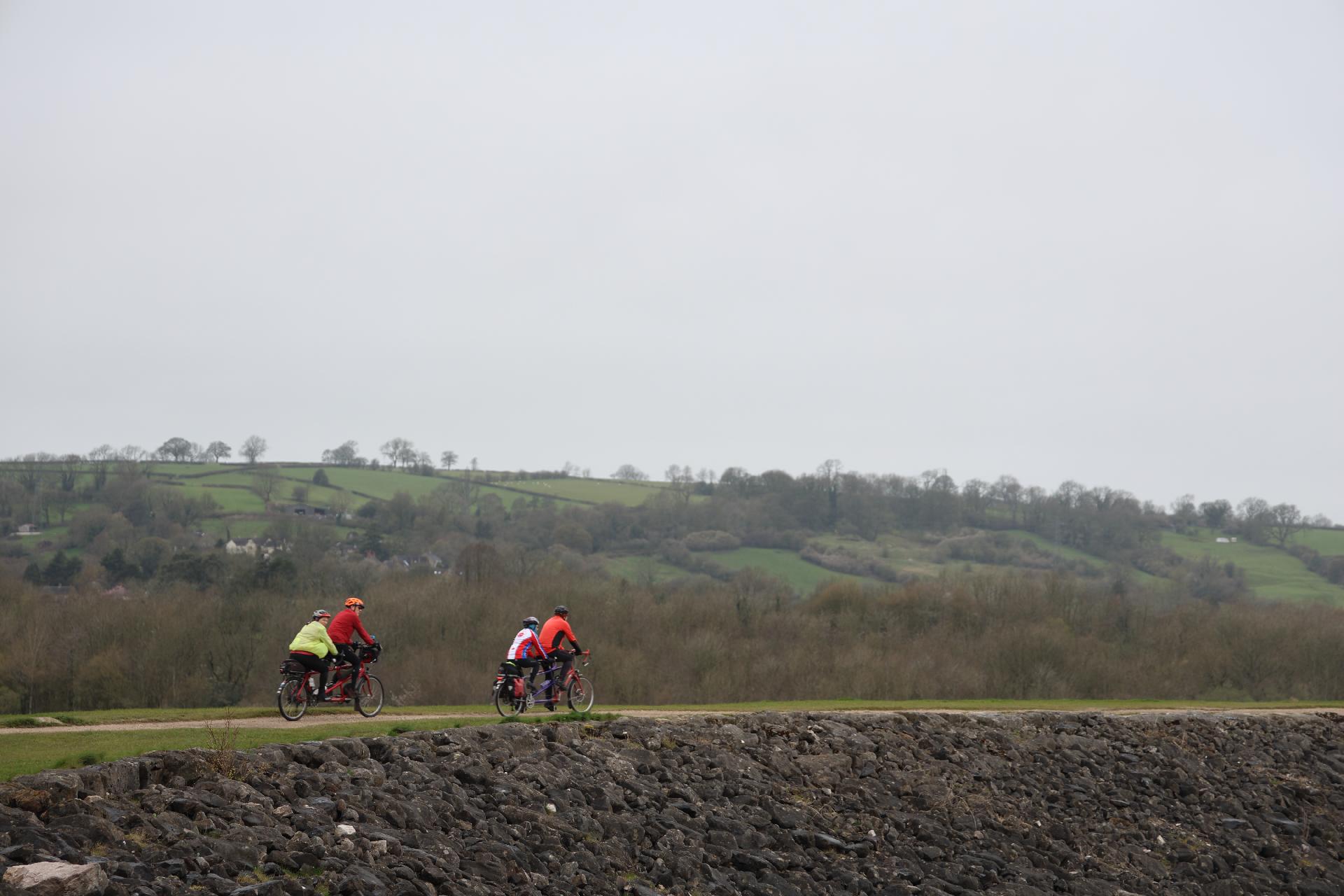 Stuart, Jackie, Ron, Linda along dam at Carsington Water